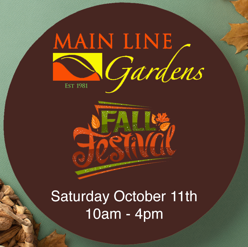 - Join us on Saturday 10/11 from 10am -4pm for food, drinks, and fun at Main Line Gardens. Free massages, pet adoption, shopping, face painting, pumpkins, and more! Plus 40% off all nursery stock and buy 2 get 1 free mums.